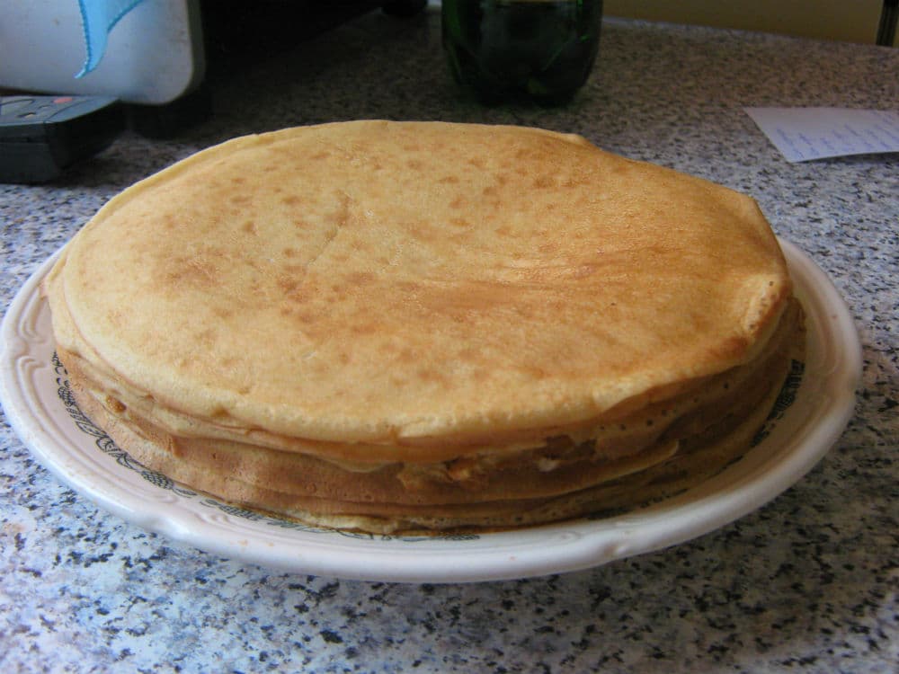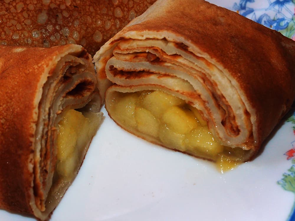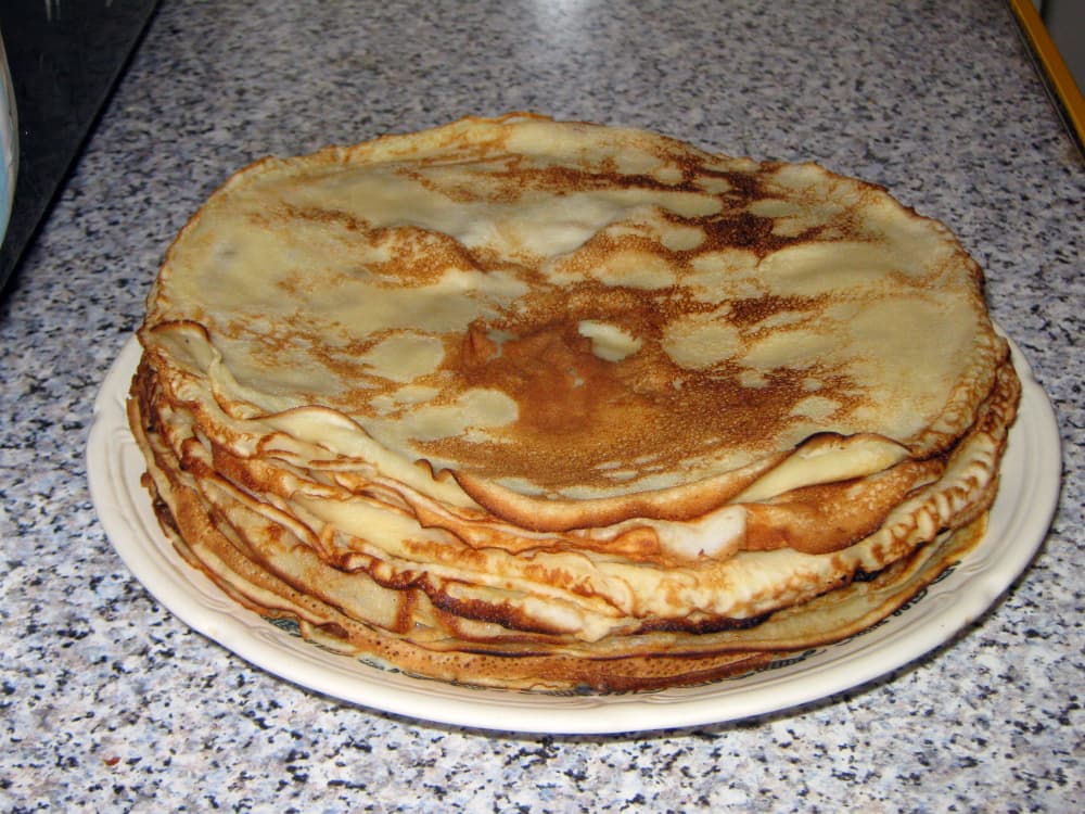 Сковородку смазать растительным маслом и раскалить. Выпекать блины на максимальном огне, то они будут с дырочками. После первого блина сковородку смазывать уже не надо.