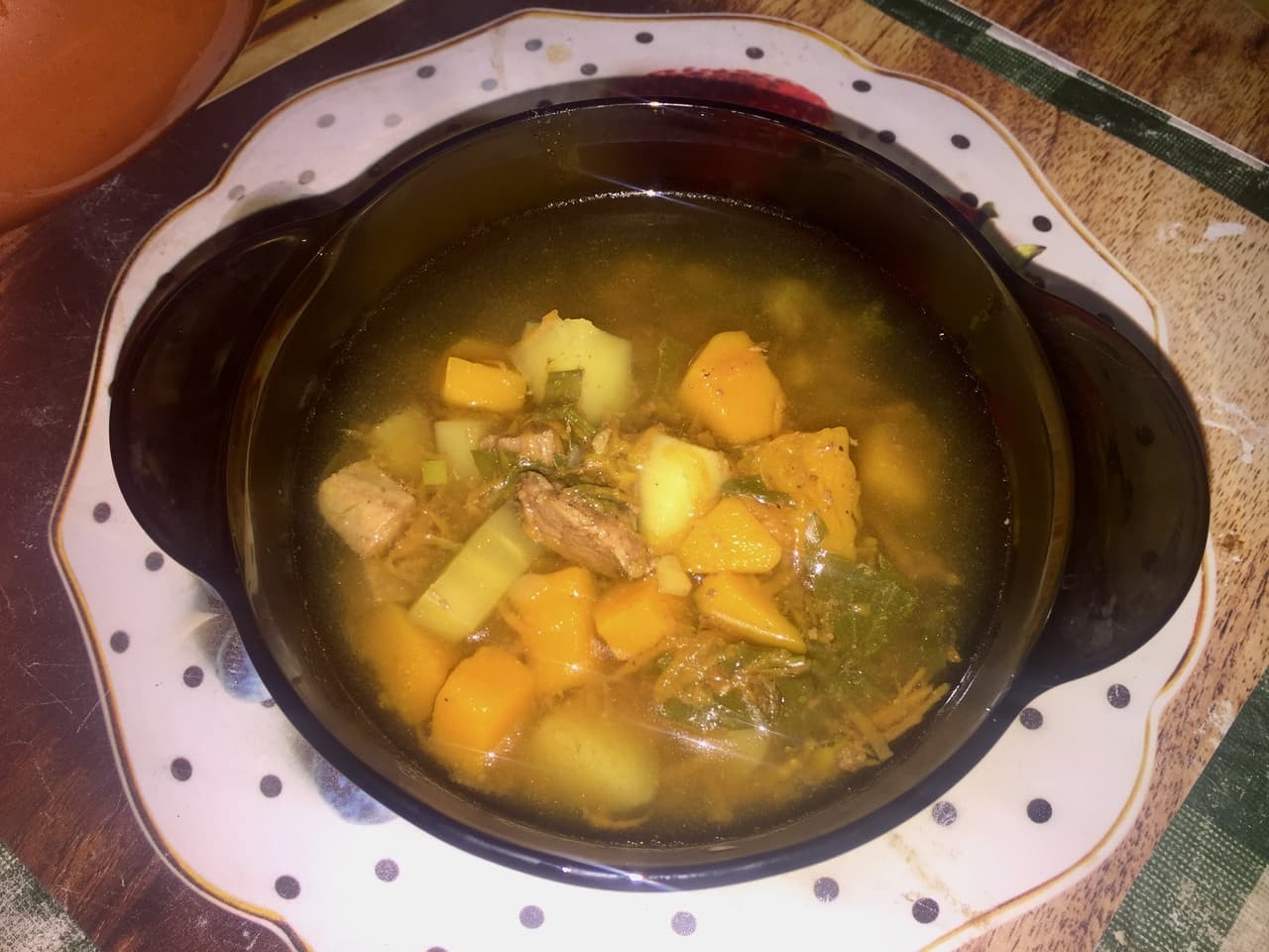 Индейку залить водой, добавить луковицу, морковь, сельдерей, лавровый лист и варить 1 час. Достать мясо и овощи. Добавить картофель и морковь. Варить до полуготовности. Добавить спагетти, мясо индейки. В конце добавить грецкие орехи, соль и перец. Довести до готовности.