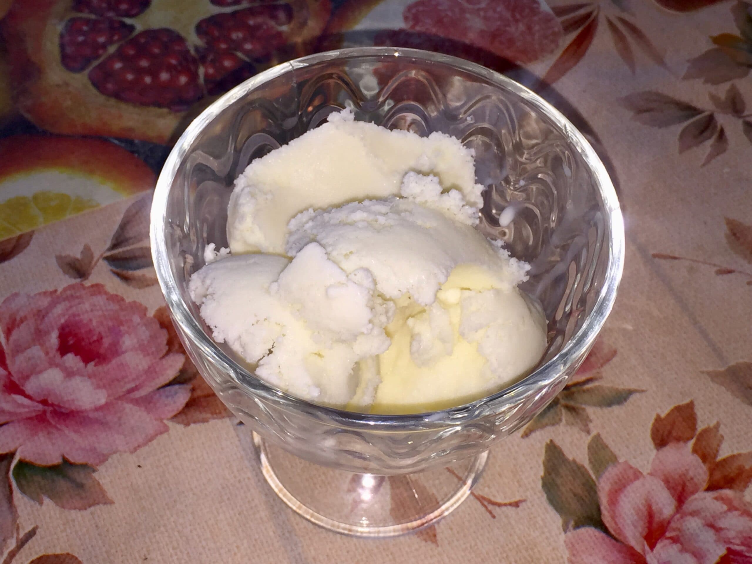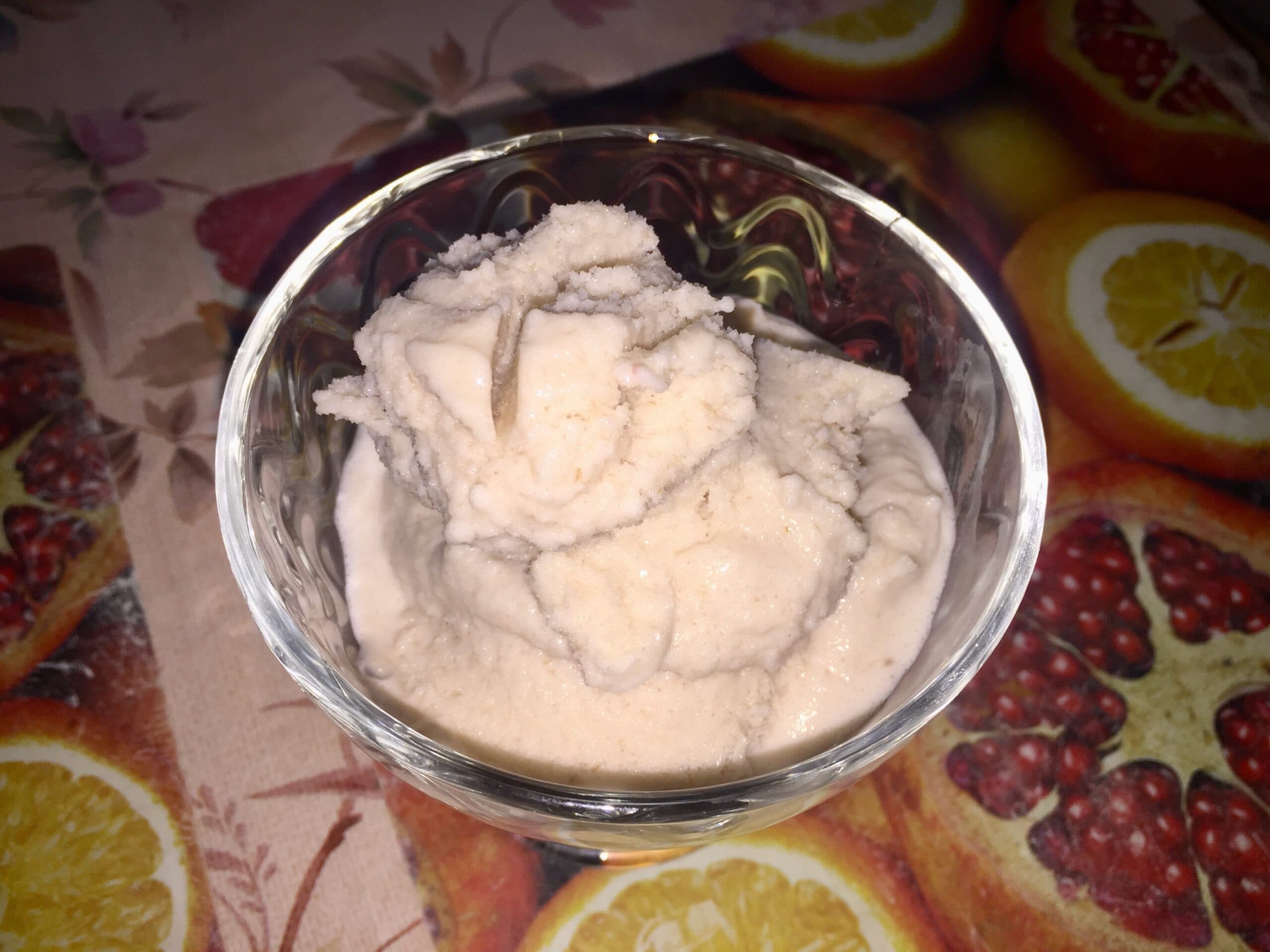 По окончанию времени получится мягкое, очень легкое мороженое, которое по текстуре немного напоминает сорбет. Мороженое можно есть стразу, а можно переложить в контейнер и поставить в морозилку для дальнейшего застывания.