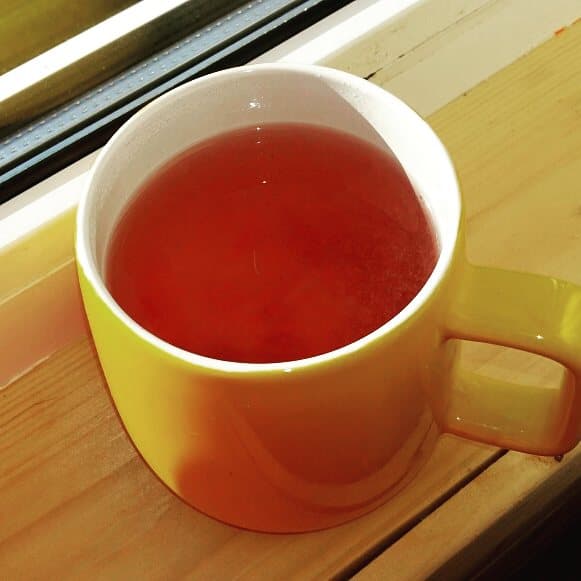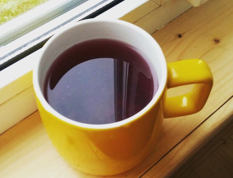 Ягоды смешать с сахаром и растереть ступкой. Добавить яблоки, залить кипятком, размешать и дать настояться 10 минут.