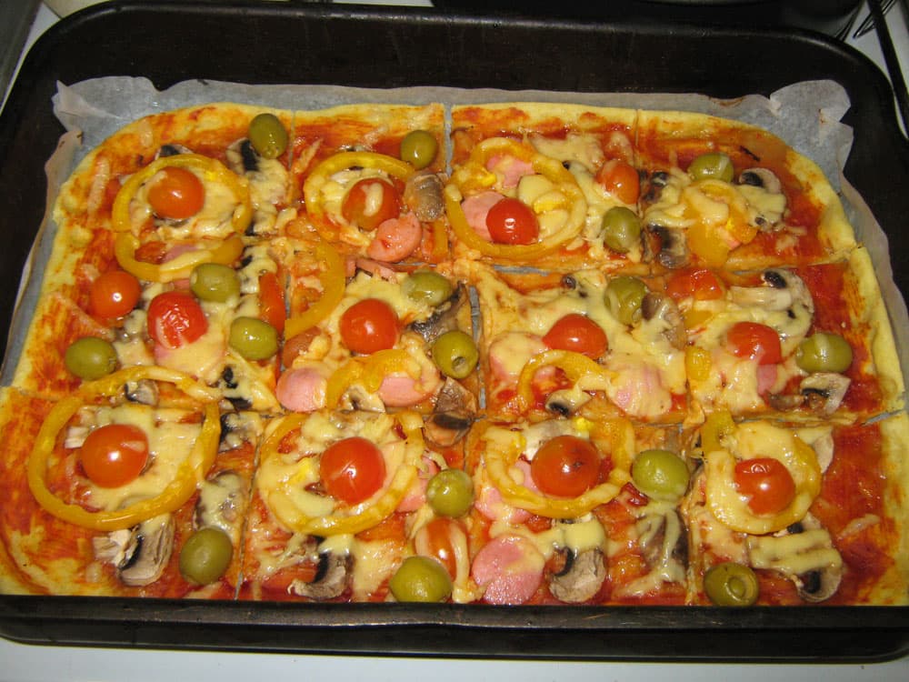 Если нет ХП, тесто можно приготовить самостоятельно. В теплом молоке растворить дрожжи, сахар, соль, добавить масло. Все перемешать и добавить муку. Замесить мягкое эластичное тесто. Переложить в миску, накрыть полотенцем и поставить в теплое место. Тесто должно подняться два раза.