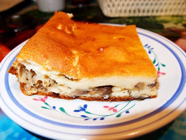 Грибы обжарить со специями на растительном масле до готовности. Приготовить тесто по консистенции сметаны. Форму для выпекания смазать сливочным маслом и вылить часть теста. Разровнять ложкой по дну форму и сверху выложить грибы. Сверху залить второй частью тесто и разровнять. Выпекать около часа при температура 200 градусов до румяной корочки. Вкусно, как горячим, так и холодным.
