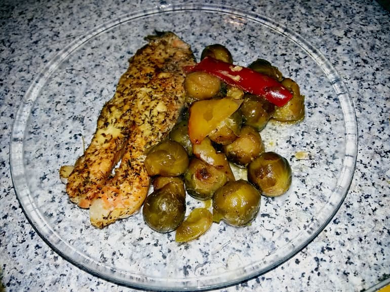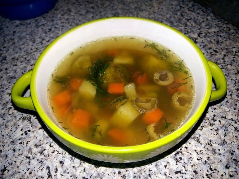 Доводим до кипения бульон. Картофель и морковь режем кубиками. Отправляем в кипящий бульон и варим до полуготовности. Затем добавляем брюссельскую капусту и варим еще 10 минут. Потом добавляем чечевицу и оливки, нарезанные колечками. Варим до готовности. В конце добавляем соль, перец, соевый соус и зелень