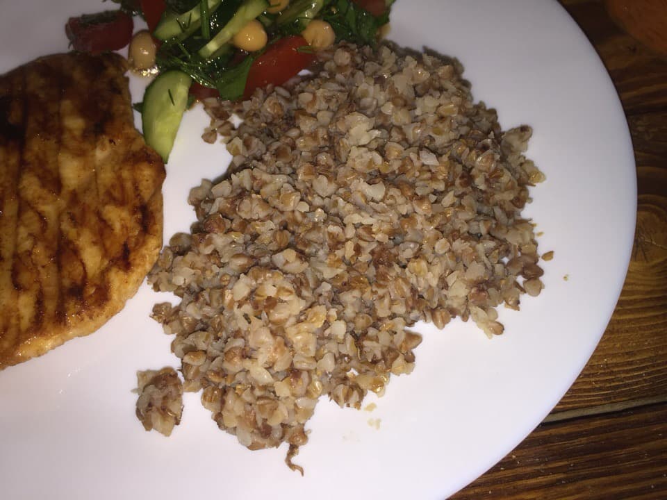 Доводим до кипения бульон и добавляем картофель, нарезанный кубиками. Варим до полуготовности. Промываем гречку. Добавляем овощи и гречку в кастрюлю и варим до готовности. В конце добавляем растительное масло, соевый соус, соль и перец. Доводим до кипения. Выключаем огонь и добавляем зелень. Накрываем крышкой и даем 10 минут настояться.