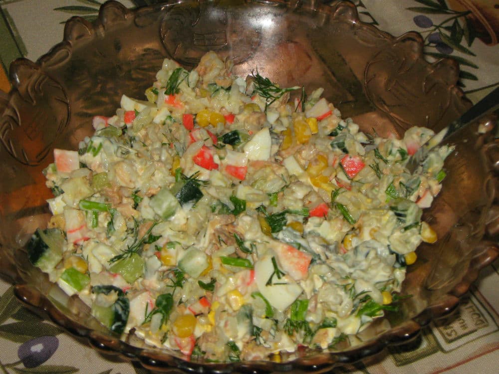 - 1 упаковка крабовых палочек