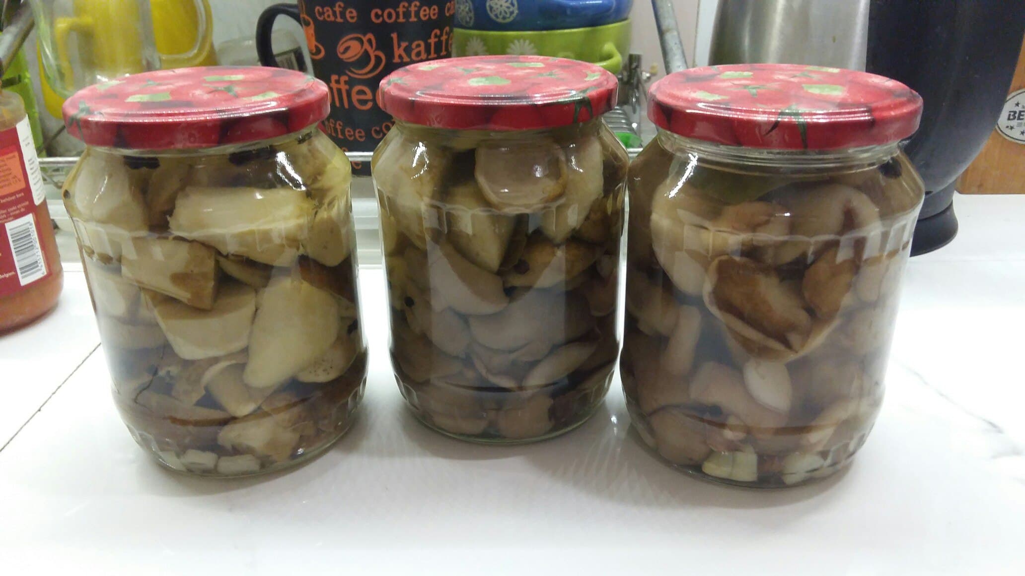 Готовим маринад. Доводим до кипения и выкладываем грибы. Варим порознь грибы по 15 минут.