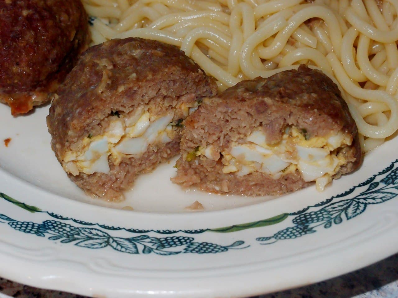 Приготовить фарш из телятины. Яйца отварить и мелко нарезать, посолить и поперчить. Из фарша сделать тонкую лепешку и в центр выложить вареное яйцо. Накрыть второй лепешкой фарша. Сформировать котлету и обжарить на растительном масле.