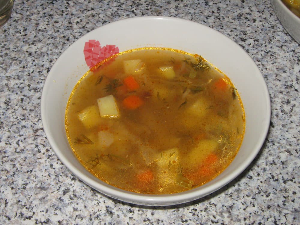 Тушеные овощи добавляем к картошке в бульон и варим до готовности моркови.