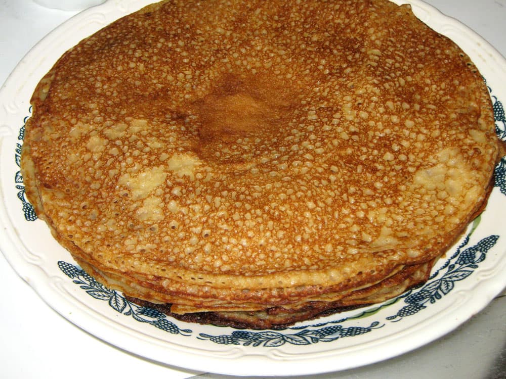 Сковородку смазать растительным маслом и раскалить. Печь на среднем огне до румяной корочки, после каждого смазывая сковородку растительным маслом.