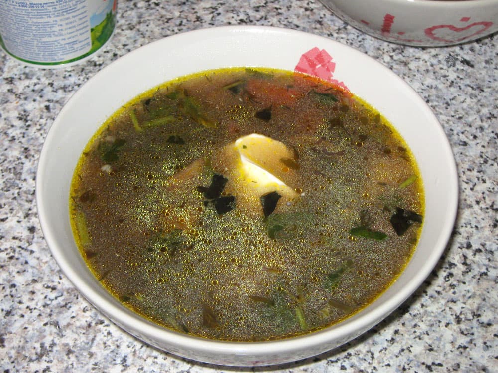 За 10 минут до готовности добавляем клёцки. Для этого набираем тесто чайной ложкой, смачивая ее в холодную воду. Варим 10 минут. В конце добавляем измельченный чеснок, зелень и помидоры, нарезанные дольками. Солим по вкусу. Варим еще минут 5 на слабом огне.