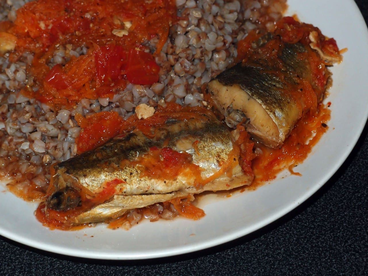 Заливаем рыбу томатном-овощной семью и запекаем при температуре 180 градусов 30 минут.