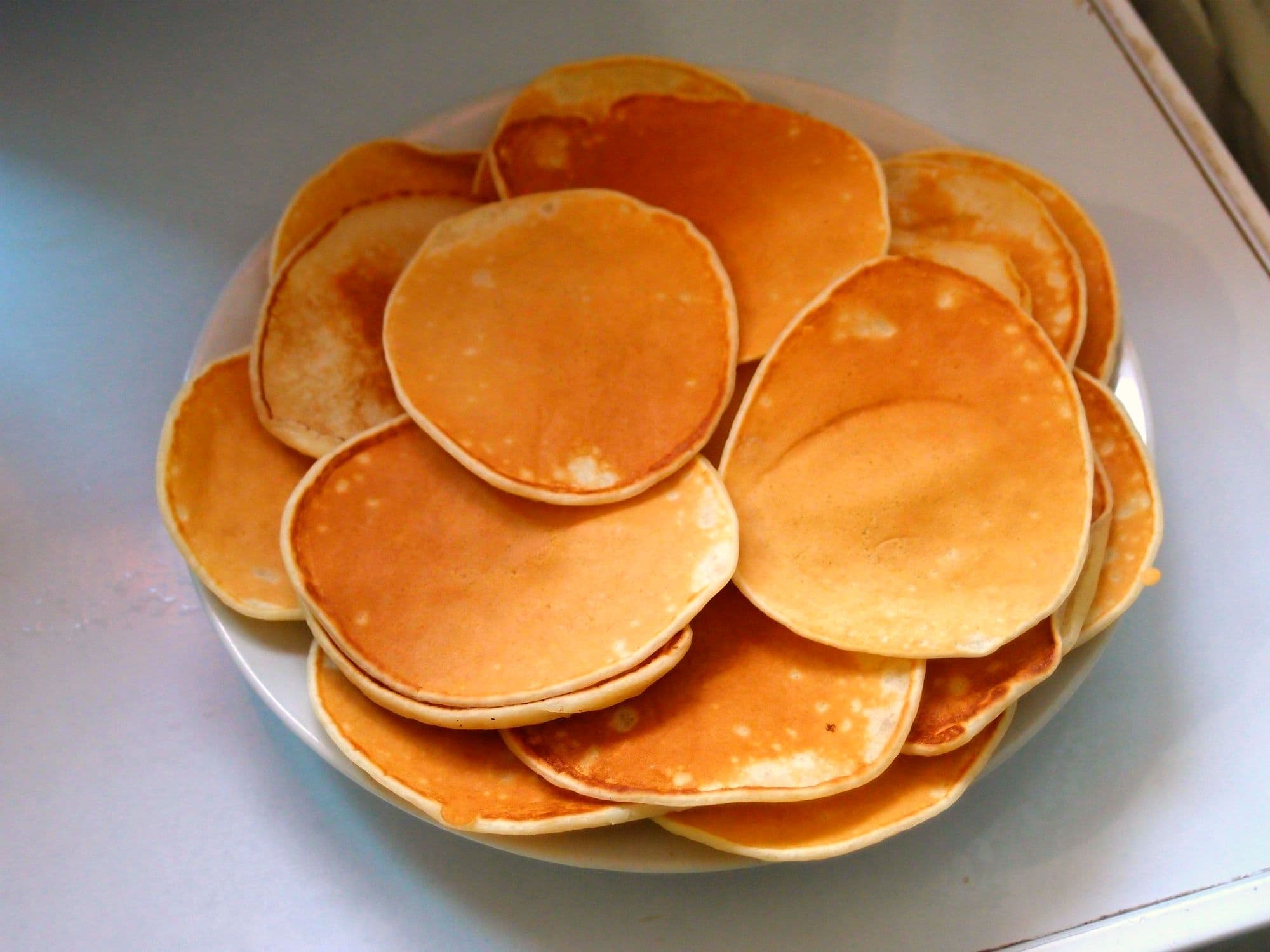 В миску для замешивания разбиваем яйца и наливаем молоко. Слегка взбиваем. Добавляем сахар, соль, ванильный сахар и снова взбиваем. Добавляем муку и замешиваем однородное тесто без комочков. Добавляем соду, гашенную уксусом, и растительное масло. Размешиваем до однородности.